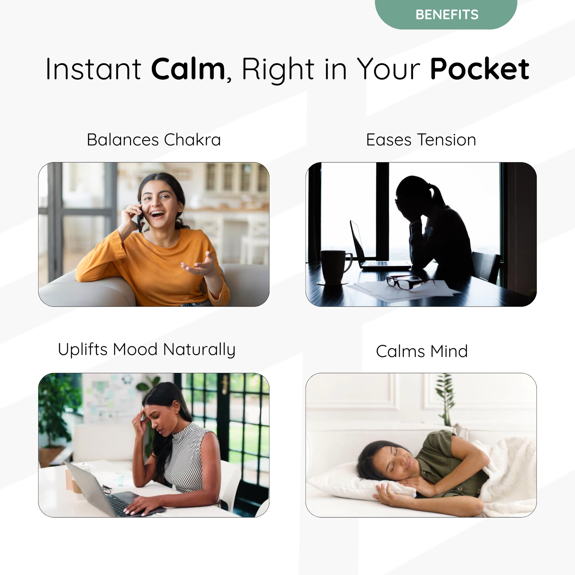 Supports energy flow and emotional steadiness, encouraging inner harmony by aligning mind, body & energy centers.