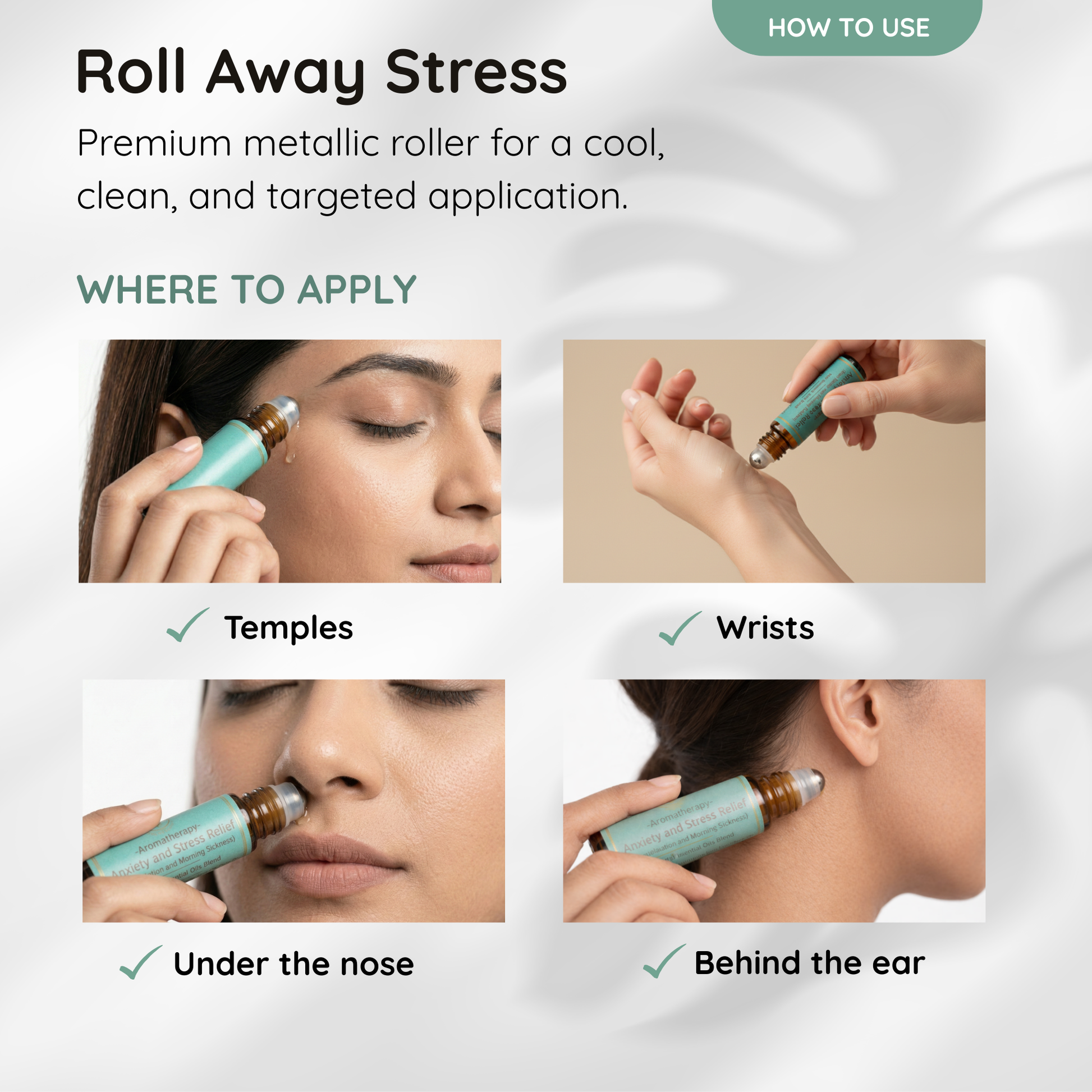 The convenient roll-on bottle ensures precise application and portability for on-the-go stress relief.
